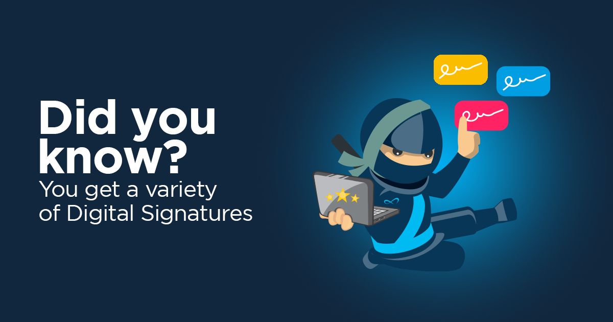 Digital signatures come in various forms, including AES (Global), QES (Europe), and SES (Global). Each signature type meets certain needs.